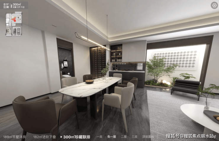 建面约182㎡下叠:约5.5米挑高地下室(可改藏酒阁/私人茶室)+独立双入户动线;