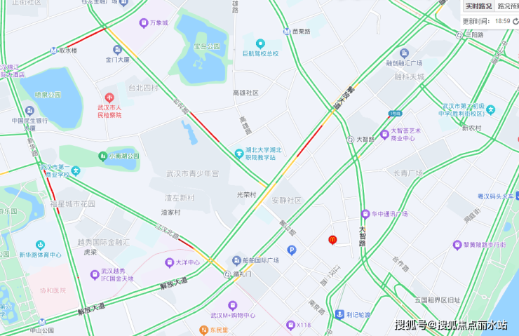 自驾:项目门口就是解放大道,解放大道是内环主干道,经解放大道走二环、武汉大道、武汉长江隧道过江都很方便,不过解放大道内环属于快速路,过境车流量也非常大,早晚高峰拥堵是日常。三阳路-循礼门段是出了名的堵点。