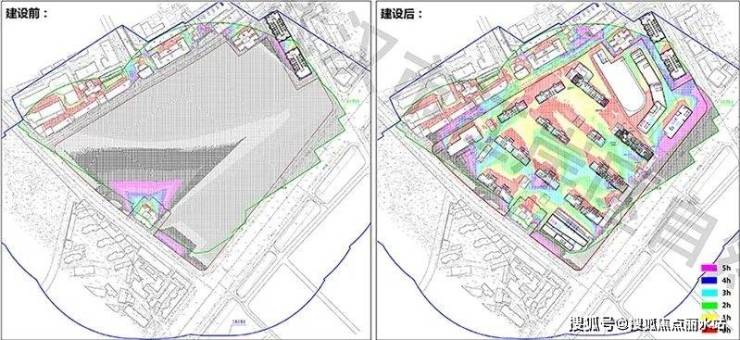 从日照分析图来看,6号楼、12号楼采光相对不足,不过仍然满足基本采光要求。