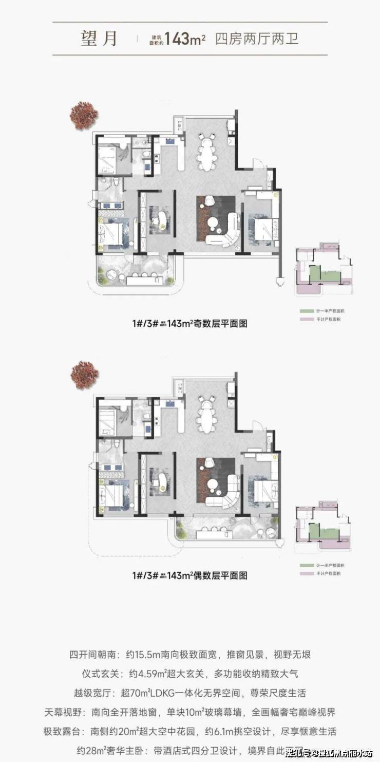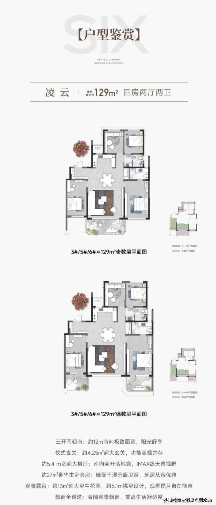 小区户型面积只有两个,129㎡得房率105%,143㎡得房率115-120% ,打造中原区全系第四代住宅 将自然融入人居,为家庭提供花园式生活场景