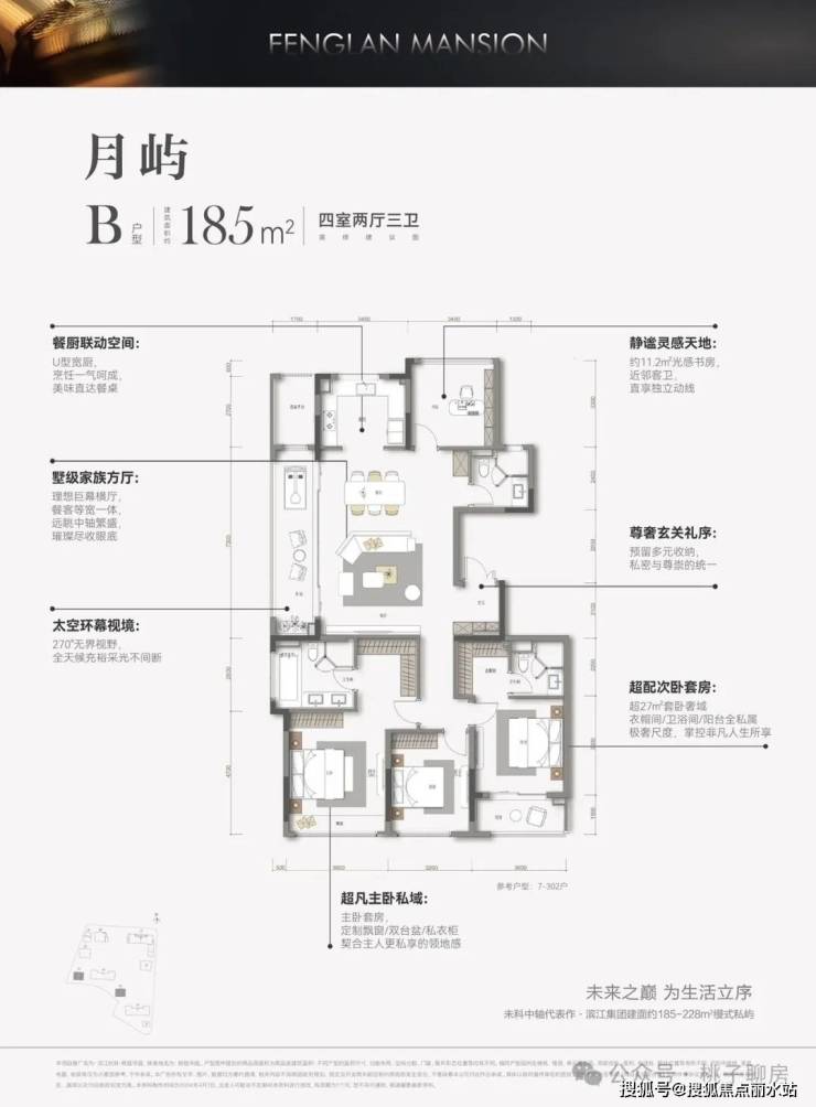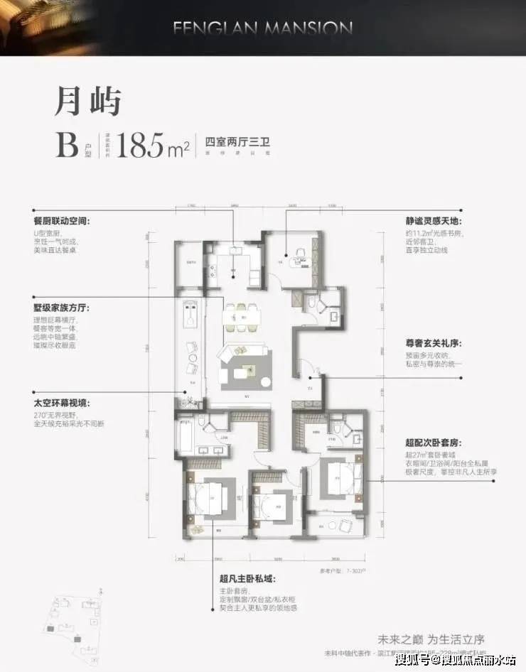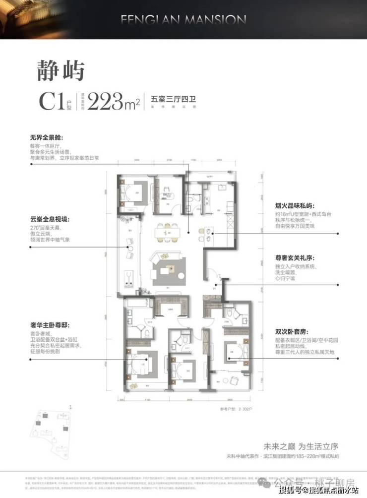 枫揽华庭项目采用围合式建筑布局,同频安缦酒店度假场景,8幢时代美学建筑,构建建筑面积约185-226㎡全景舱奢宅。