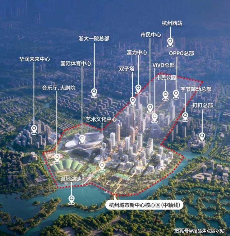 项目整体规划方案由国际大牌建筑事务所福斯特Foster + Partners设计,整个未来科技城的心脏地带,从北到南,EFC奥克斯中心为代表的商务办公集群,阿里、钉钉还有绿汀路TOD两侧万象综合体、国际体育中心等。3年规划落地,枫揽华庭生活绽放。