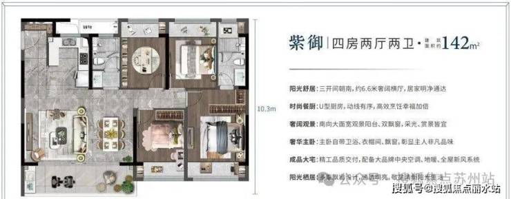 精研建筑面积约108-142㎡全明户型,全屋大飘窗、宽景大阳台、南向大开间、私密主卧套,空间实用与美观兼备,超高得房率与附加值,满足多样家庭功能需求