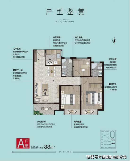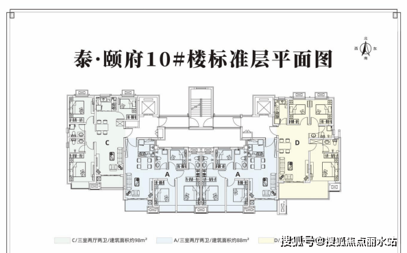 通过平层图可以发现,小高层采用连廊设计,中间户 88㎡小三房也能实现南北通透,在市场上比较稀缺。