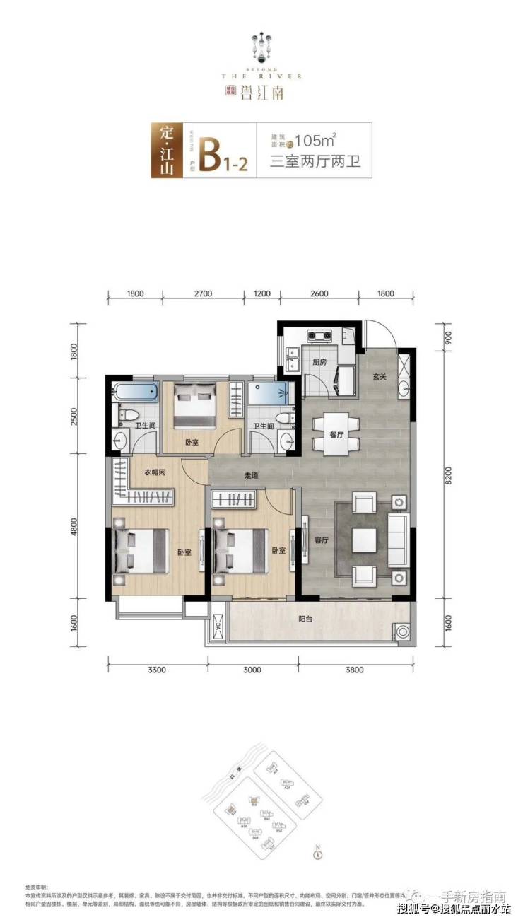 B1#楼——B1-2户型 建筑面积约105㎡ 三室两厅两卫