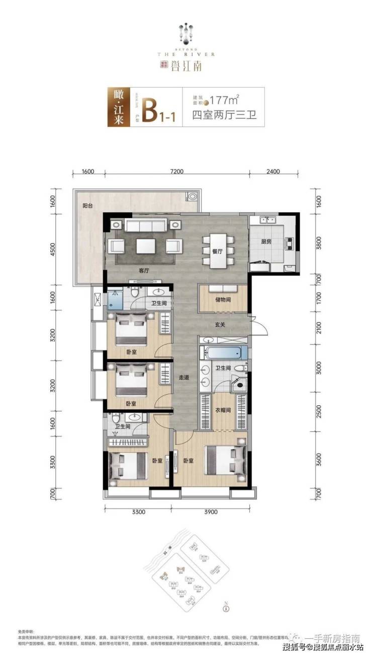 B1#楼——B1-1户型 建筑面积约177㎡ 四室两厅三卫
