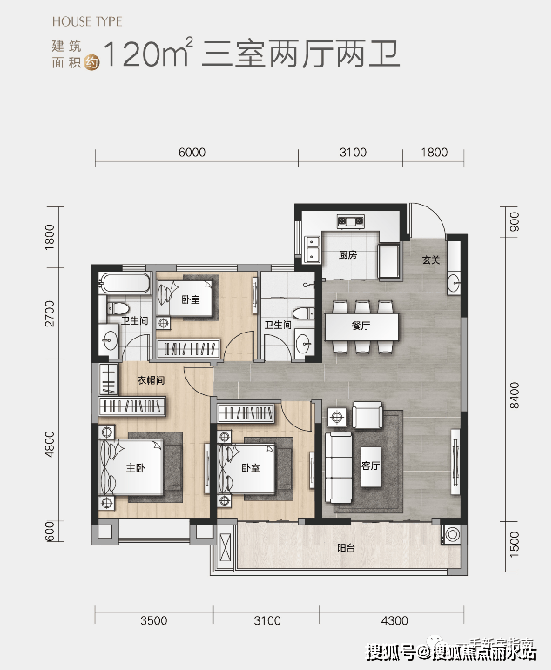 ·客厅开间4.3米,相较常规三房设计,尺度更为阔绰
