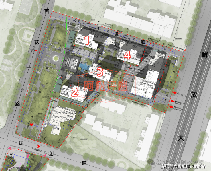 一期4-A地块占地面积约6.2万㎡,计容建面约23.4万㎡,住宅建面约22万㎡,容积率约3.77,共计1754套房源,户均建面约125.6㎡。