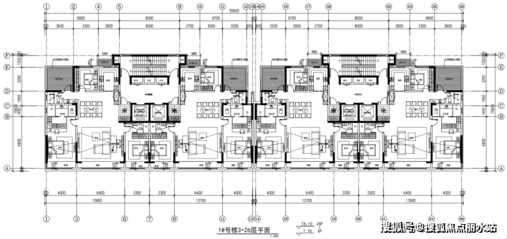 以1号楼平层图为例,两梯两户设计,建面约160平,三开间朝南的大平层,双主卧设计,非常豪横的安排了3个卫生间。