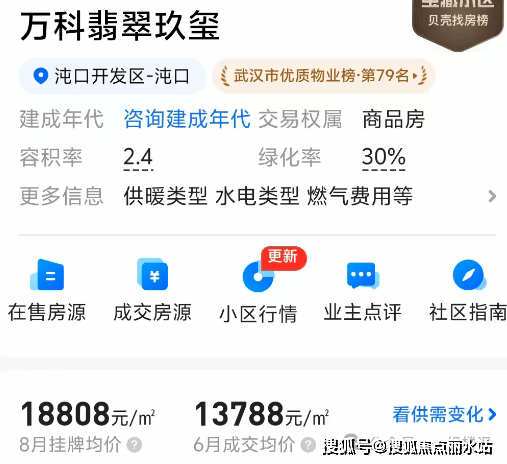 再看附近的二手房价格,万科早期开发的金域蓝湾近期二手房成交均价约1万元/平左右,之后开发的经开豪宅翡翠玖玺二手房成交均价不到1.4万元/平,算是经开二手房中的较高价格。