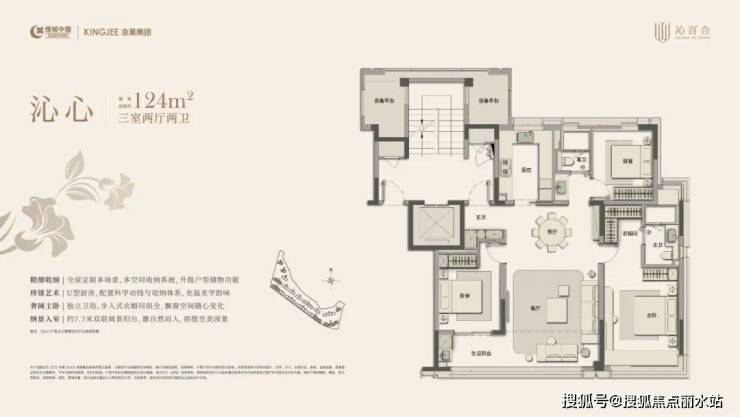 沁百合主力户型为建面约124-143㎡户型,以超高使用率打破空间边界,最大约7.7米南向双阳台以及LDKB一体化的设计,引江风与阳光入宴。标配“三恒两舒”科技系统,户式空气源热泵+毛细管顶棚辐射+户式全屋置换新风系统重新定义舒适。从生活细节出发,配置瑞士恩仕智能马桶、博世八系厨电四件套、绿城智家系列水槽净洗一体。玄关白玉石材背景墙、客厅圆弧切角吊顶、拼花实木地板,一寸一厘俱是匠心图腾。项目分别在2025年4月首开售罄,6月二开几乎日光,荣膺鼓楼区上半年套数TOP1,被市场追捧为“鼓楼滨江核心低密级资产” ,三批次少量房源正加推热销中。