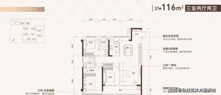 建面约116平三室两厅两卫:此户型位于5号楼两端,方方正正,南北通透,舒适度非常高。门口带玄关,保证隐私;U型厨房,实用性强,厨房与餐客厅一体,活动空间大;主卧套间设计,还有一个270度拐角飘窗,采光更好。在很多改善楼盘,这个面积段是中间户,但在这里是边户,性价比更高!