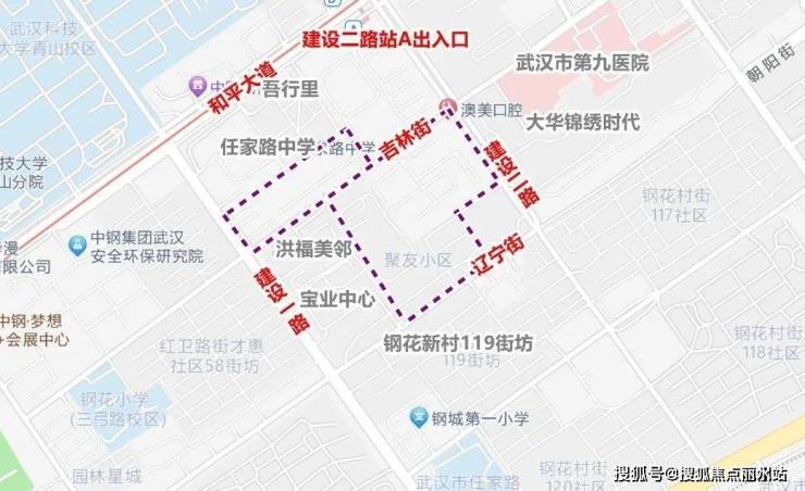 东边是大华锦绣时代、武汉市第九医院、建设二路;