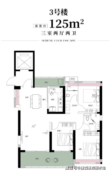 户型设计强调交互:主力户型均采用“贯通式全景阳台”设计,其中125㎡户型更实现了南北双阳台,极大地拓展了采光面与休闲空间,将室外景观最大化引入室内。