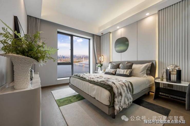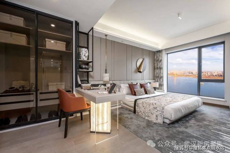 为了使得户型观江视野更加极致,建面约163平户型中配置了超大尺寸的环幕观江落地窗,采用约15平无切割整面玻璃进行拼装,每一块都只能从外部吊装,施工和材料成本都非常高。目前,全武汉只有极少数一线临江楼盘才能做到如此级别。