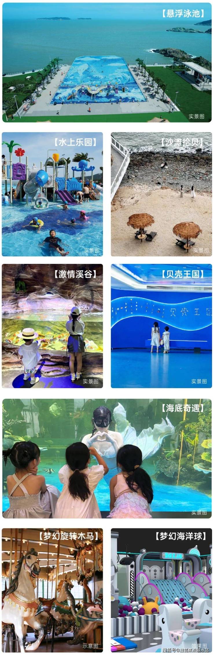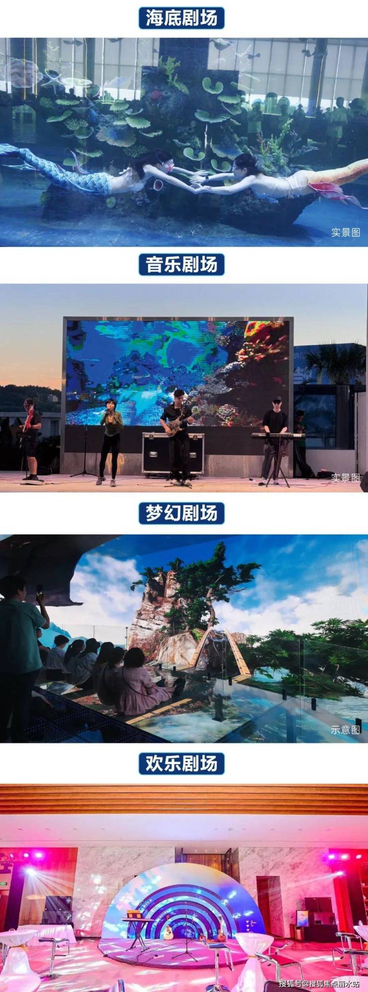 度假区经营业态涵盖特色民宿、星级酒店、海鲜酒楼、自助美人鱼餐厅、海洋馆、室内乐园、游艇咖啡;四大剧场:海底剧场、欢乐剧场、梦幻剧场、音乐剧场;