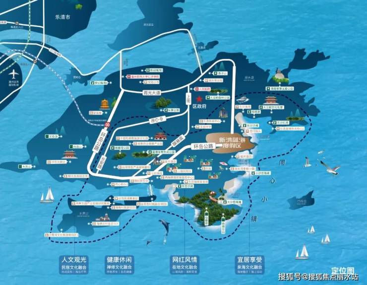 新鸿蓝海度假区,是一个集休闲度假、亲子游乐、研学、露营、疗养、室内娱乐于一体的综合旅游景区。位于温州市洞头区本岛东侧,东望蓝海,蓝海度假区占地约8.8万方,总投资逾15亿元。
