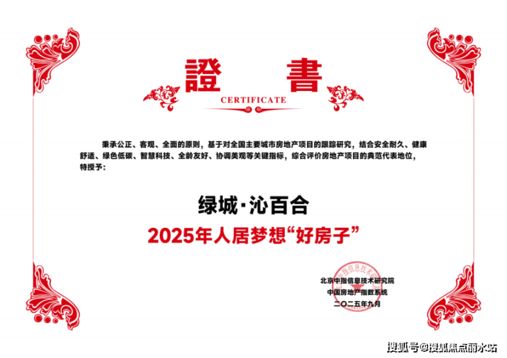 苏州绿城·沁百合项目凭借优异的市场表现、过硬的产品品质,荣膺“2025年人居梦想‘好房子’”称号。