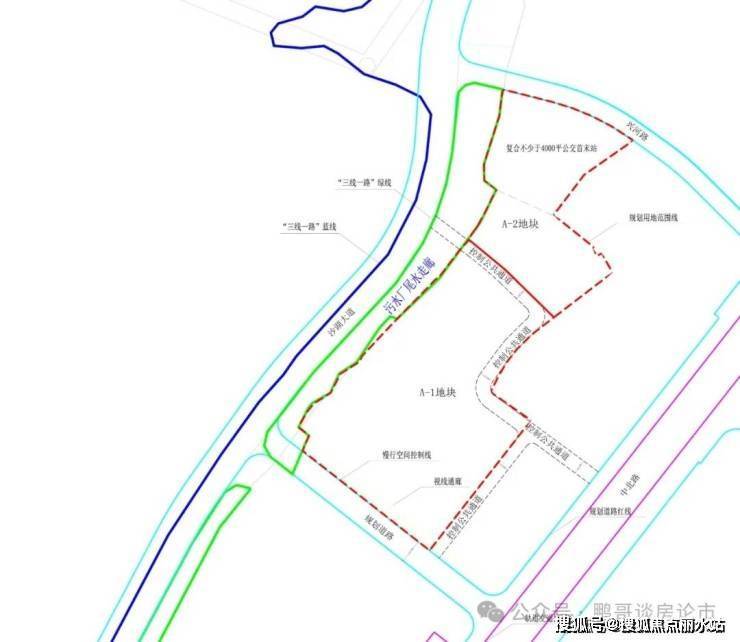 视线通廊:地块内控制一条垂直沙湖,宽度不低于30米宽的视线通廊沿西侧垂直沙湖的规划道路控制宽度不低于10米的视线通廊。