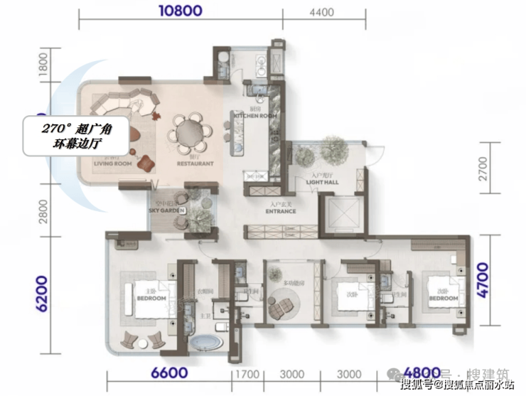 兼顾的入户光厅和空中花园的户型;