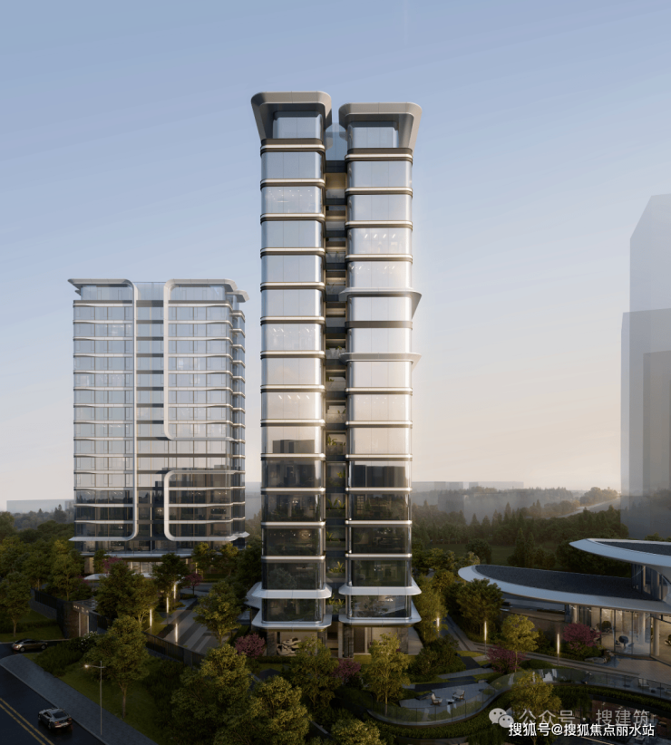 为了配合全景舱户型的开放式设计,立面往往采用超流体曲面屏等创新设计,提升质感的同时也提升建筑的美学价值;