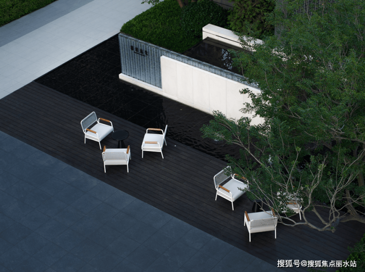 中海·十里观澜的园林设计师,以梵克雅宝的高端定制系列“星空下”为灵感,打造轻奢隐贵的现代典雅园林风格。在水系打造过程中,通过叠水、石材、黑山石等有序搭配,融入“山水相映”的景观理念。在中央景观区,为了便于业主未来园区休憩、交流,中海·十里观澜在此打造了专属的景观会客厅,营造度假般的居住感受。