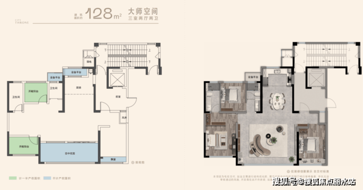 建筑面积约128㎡样板间示意图,仅作为装修创意展示,非交付标准,本项目为毛坯交付。