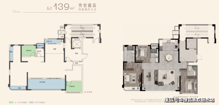 建筑面积约139㎡样板间示意图,仅作为装修创意展示,非交付标准,本项目为毛坯交付。