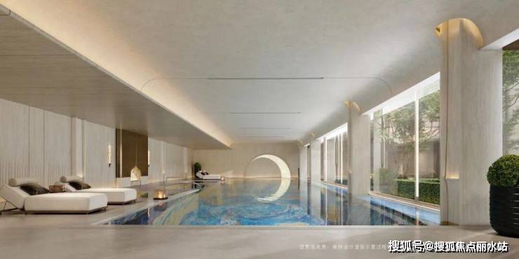空间做精,室内恒温泳池以约25*8米专业泳道,配置采购成本高达约200万的恒温循环设备。泳池底部以马赛克拼花致敬梵高名画《星空》,颜值好看,档次更高。