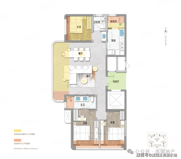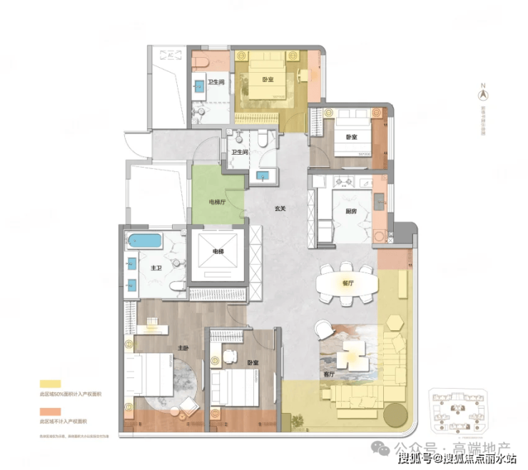 奢华主卧套+舒适套间,大空间尺度,让居住生活更舒畅和更具私密性。