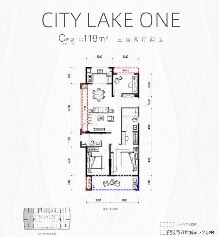 建面约118㎡舒适三居:套房主卧配备独立卫浴和步入式衣帽间,兼顾私密性与收纳需求,餐客厅一体化设计让家庭聚会、亲友宴请更显从容。