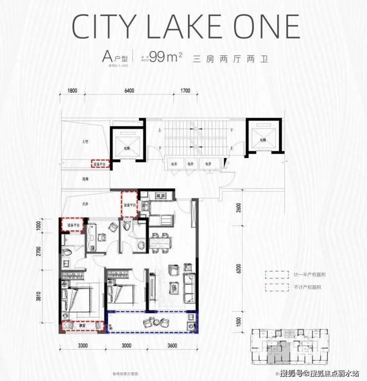 建面约99㎡温馨三房:大面宽设计保证充足采光,双联阳台兼顾生活实用与观景乐趣,适合二人世界或三口之家;