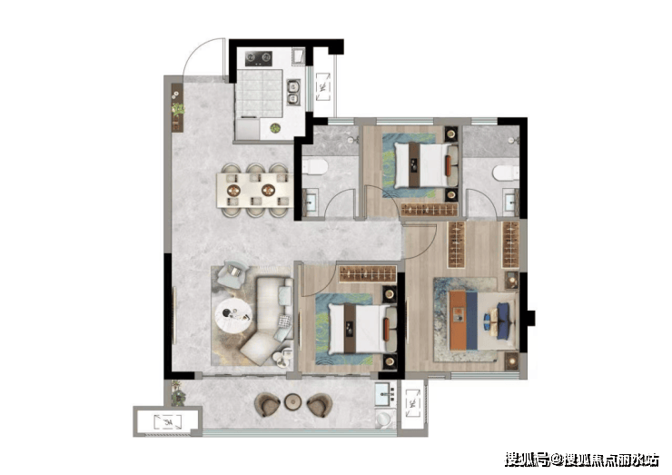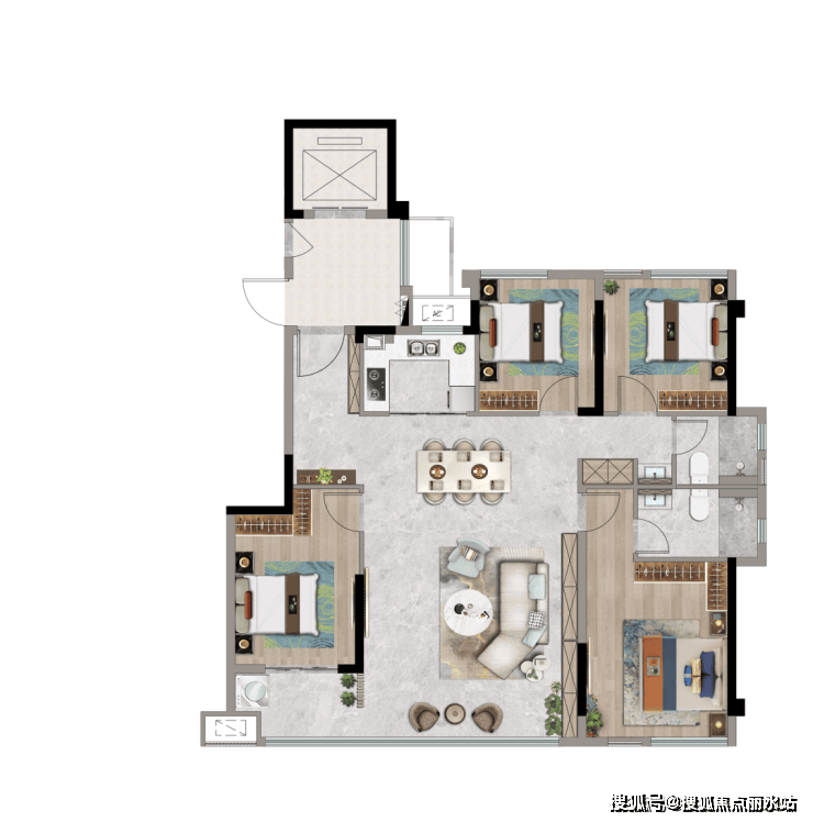119-129㎡四房:奢阔尺度,宽厅搭配全景阳台,改善客群首选。