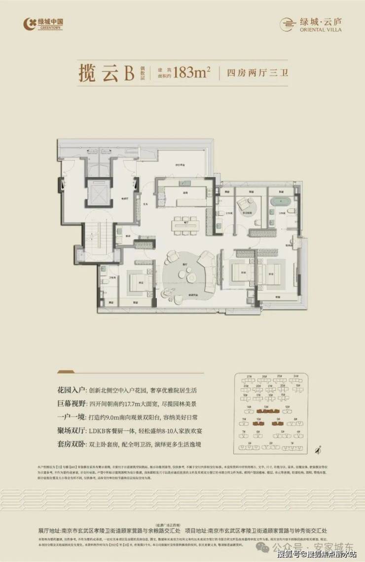 该项目也是绿城南京首个庐系作品,据了解,“现代形、东方意”的绿城“云庐系”,源自杭州西溪云庐,目前全国已有30余作品。其庐境美学以东方人文精神为根基,实现传统美学基因的现代转译,在客户心中镌刻下独特印象,深度契合人们内心的院落情怀。