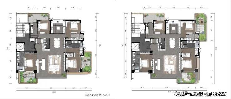 此外可以看到,无论是奇数层还是偶数层户型,均在建筑四 角 「外挂 」一座空中庭院,东西南北,各置一方,将 「 全环景空中庭院」的体验推向了极致。