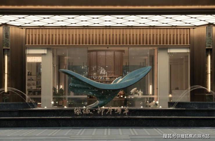 86米宽的林间画框,于此徐徐展开,门前,紫薇织就柔美的夏日天幕,细碎花影在风中呢喃;朴树撑起浓荫的穹顶,遒劲枝干刻录着时光的年轮。归燕衔翠主雕塑展翼掠水,与跃动跳泉动静相生,演绎“飞燕掠水·泉涌吉庆”的灵动诗篇。