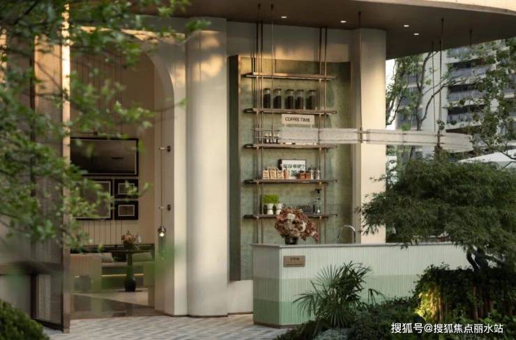 架空层向自然延伸,化身为一处雅致的咖啡吧。林下平台与架空层咖啡吧浑然一体,形成流畅的过渡。羽毛枫摇曳生姿,静石卧水,灵动点睛。景观空间与架空层功能相互渗透,延展场所温度,打造情景交织的“新生花园”复合空间。