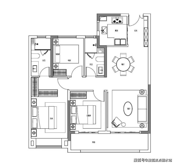 宽厅设计与南向面宽为王的设计理念统领本案所有户型产品设计,引入IMAX级双开间景观阳台和端部弧形转角飘窗,厅房灵活可变,“多卧室”与“宽厅”形态可根据家庭结构进行自由切换。