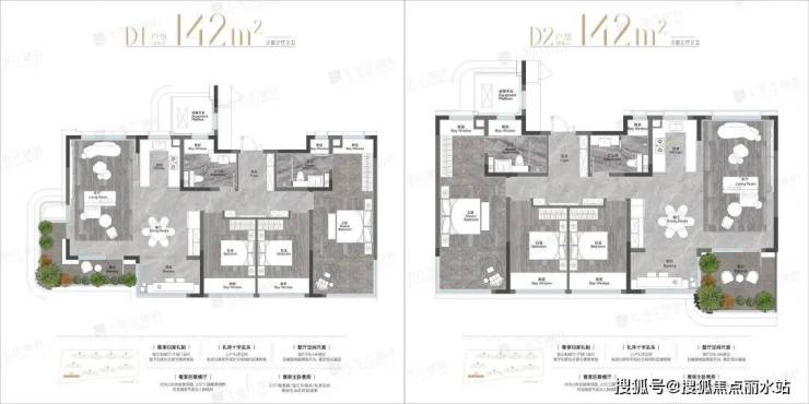 项目均为四代宅产品,户型面积区间102-142㎡,高层102㎡、114㎡,洋房127㎡、142㎡(墅厅)。