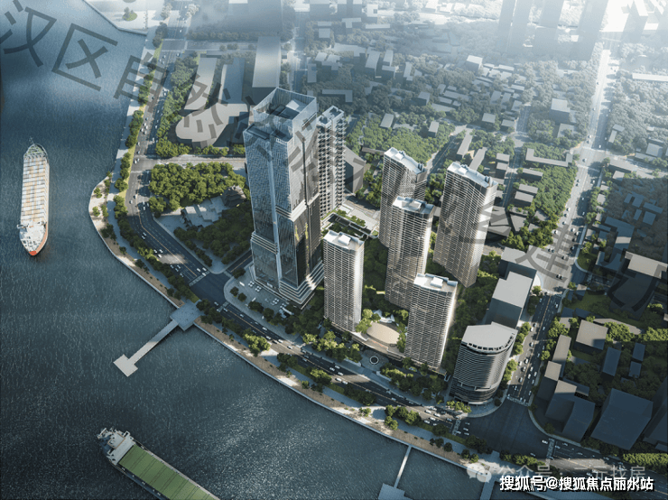 右侧5栋沿江排布的住宅是招商长江序。