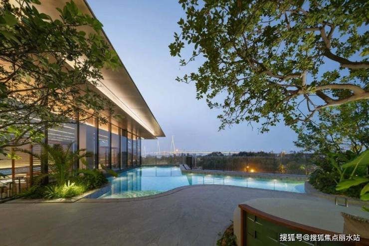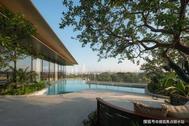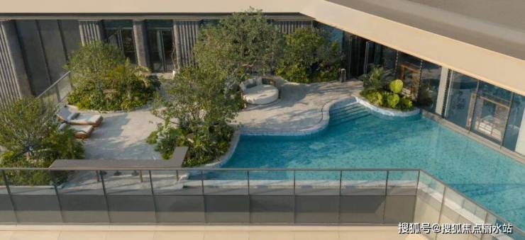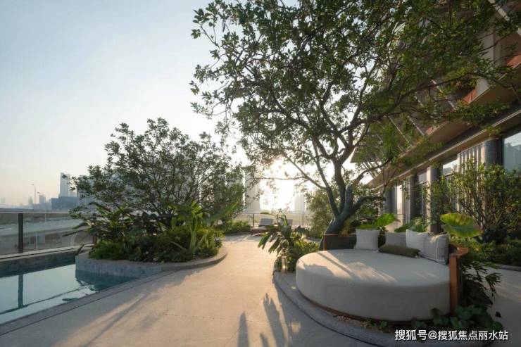 登临三层,意境再度升华。130㎡无界泳池以巧妙的设计打破边界,池水向外延伸,与天空、长江连成一片。绿岛错落其间,模糊了水与景的界限。在这里,既可远眺浩渺江景,亦可举办私属派对,将度假氛围推向高潮,尽显从容写意的生活格调。