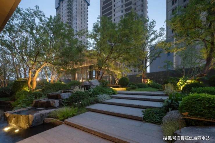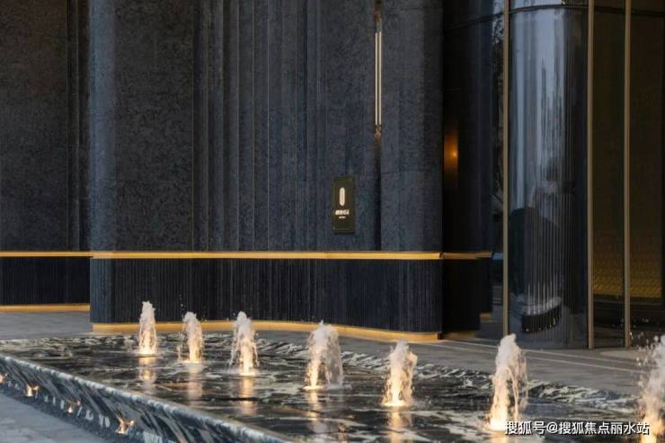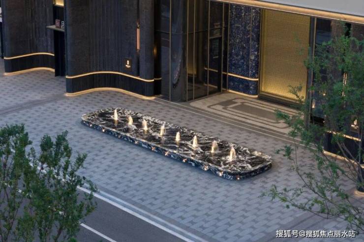 宝格丽黑大理石铺就的涌泉水景,如一方墨玉镶嵌于大地,沉稳高贵。与之呼应的,是逾400㎡专属IP铺装与地雕拼花,将项目LOGO解构重组,以福鼎黑与范思哲灰花岗岩为材,经水刀切割、手工打磨与无缝拼接,实现毫米级精度。这是“归家即度假”的品质生活的开始。