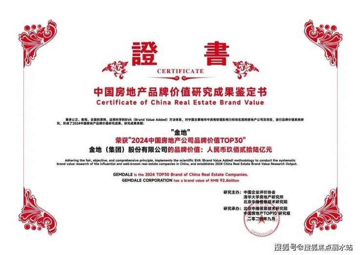 图 |金地集团获得2024中国房地产公司品牌价值TOP30