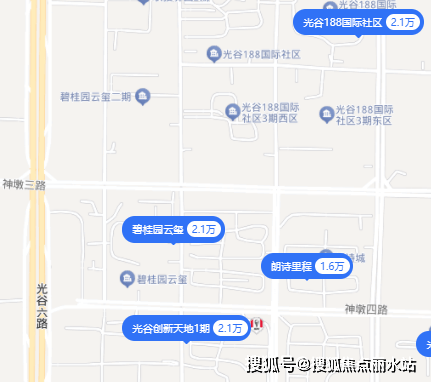 比如,光谷六路附近的二手房小区,朗诗里程房龄较老,二手房参考价要比周边其他小区低了5000元/平左右