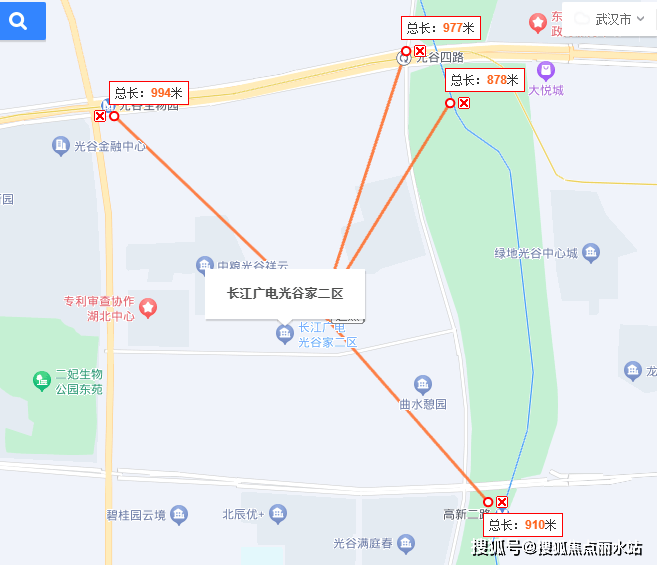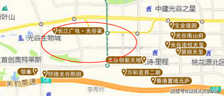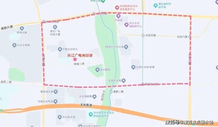 东边为光谷四路、光谷生态大走廊、绿地光谷中心城等。