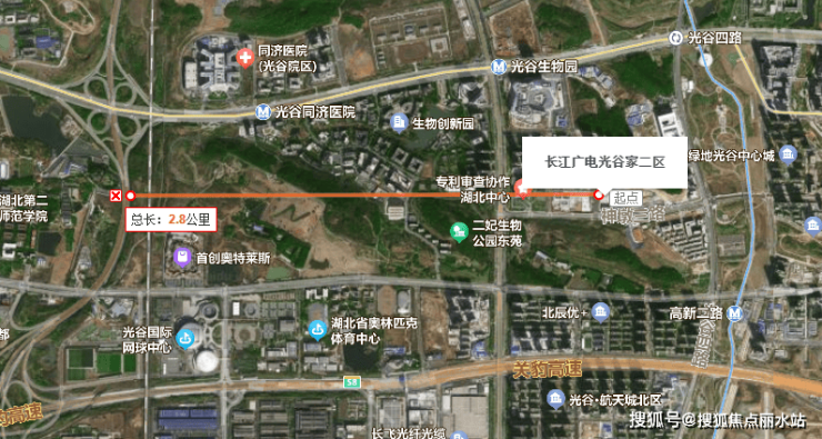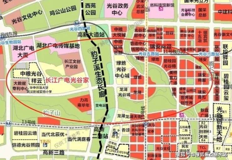 北面是湖北广电传媒基地、高新大道、鸡公山公园等;