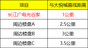 没有对比就没有伤害。光谷中心城其他在售楼盘到大悦城基本都在3公里以上,长江广电光谷家与大悦城直线距离不到1公里。住在这里,不用担心堵车,穿过公园就能到大悦城逛街购物看电影。