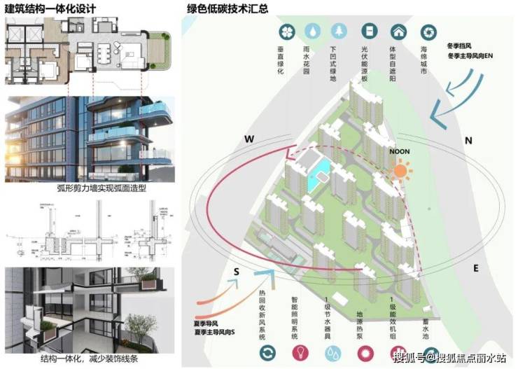 精细化设计也体现在多专业协同配合上,在结构设计中,通过优化弧形剪力墙的设计,使结构本身成为建筑造型的重要表现手段,从而避免额外增设造型柱而增加成本。景观方案使得庭院通过下沉布局承担雨水回用系统的主体功能,集成过滤与雨水花园功能,兼顾景观美观与生态效益。机电设计方面,将电气设备用房布置于地面,避免因内涝导致设备淹水的风险,同时减少地下室面积,降低整体造价。住宅楼电梯采用开敞式合用前室设计,满足入户花园功能需求的同时,减少风井设置,有效节约空间与成本。结构、景观与机电等多专业的精细化设计,不仅提升了建筑整体品质,还在功能与成本之间取得了最佳平衡,为住区高质量发展提供样本。