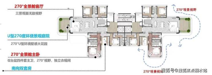 在核心户型中,将客厅与主卧采用双270°全景舱设计,将自然景观与生活空间完美融合,极大提升了居住的舒适性与品质感。