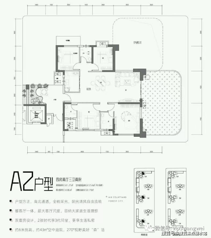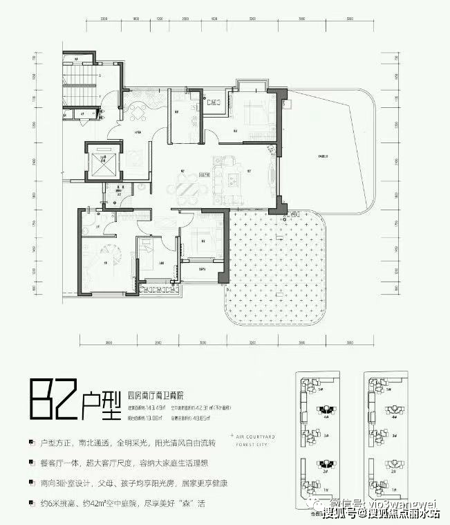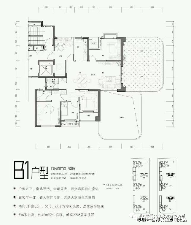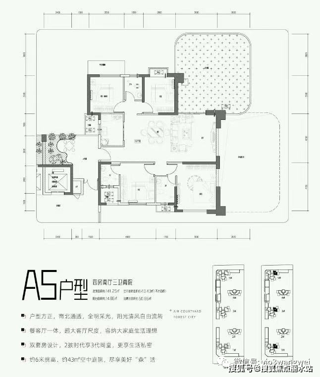 第四代住宅是由清华大学建筑研究院设计,集空中别墅、空中园林等优势于一身,引入“垂直森林”概念,并实现户户自带空中庭院,带来全新的居住体验。
